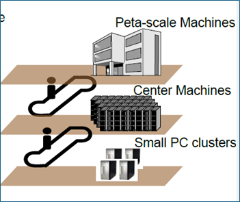 これまでは、Flopsとかストレージとかが主要なコストであったが、今では、プログラマや消費電力やバンド幅である。レガシーコードではなくとも古いアルゴリズムを動かす必要がある。猛烈なトランジスタ数を使いこなす方法論として、