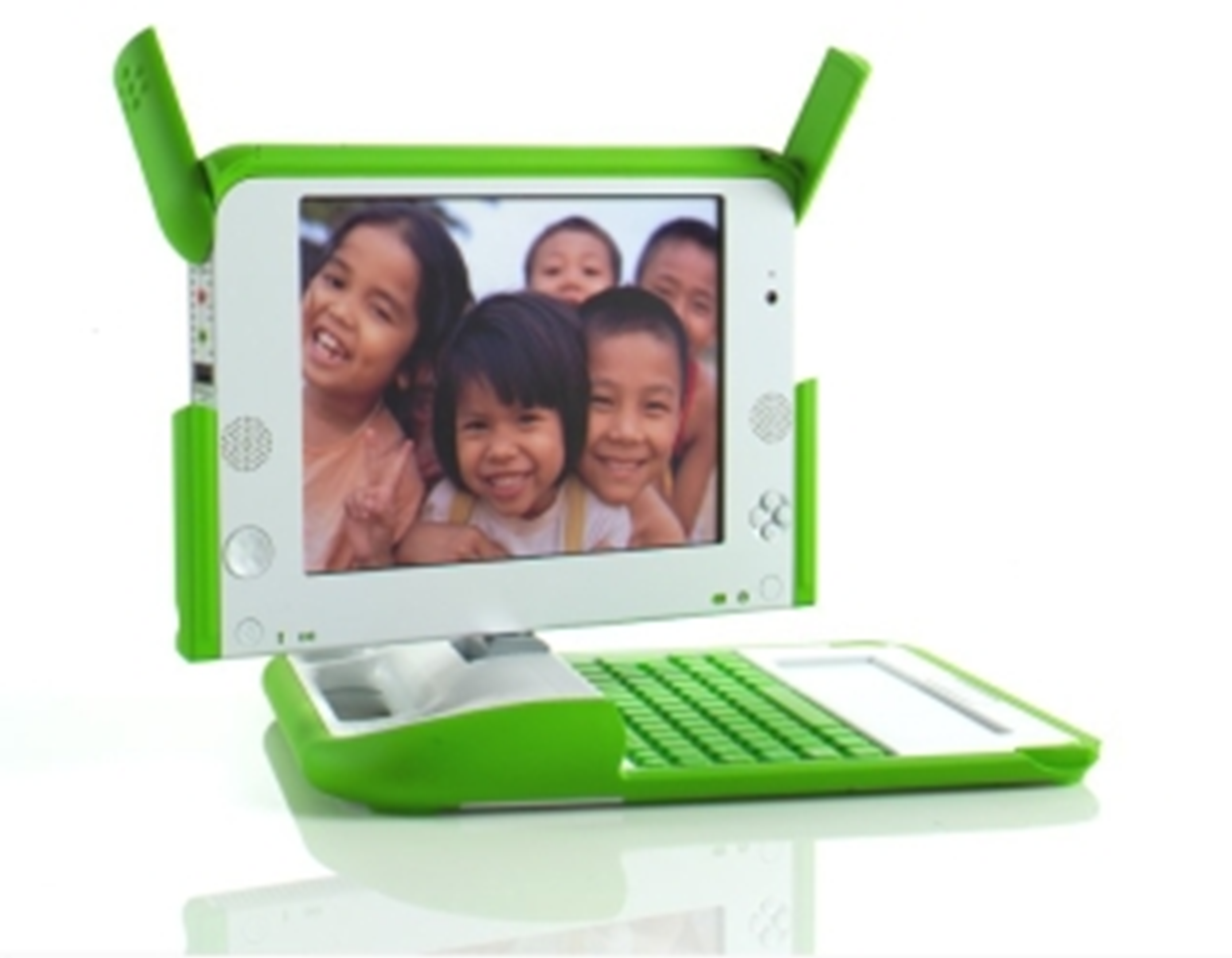 HPCとは関係ないが、Nortel社がいわゆる100ドルPCを出展していた。これはOLPC (One Laptop per Child)プロジェクトの成果である。CNNニュースによると、この「100ドルPC」は、米マサチューセッツ工科大(MIT)の研究者らが提案したアイデア。途上国での使用を想定して手回し式の発電装置をつけ、ハードディスクの代わりにフラッシュメモリーを搭載する。OSはLinux (Fedora)。ディスプレーは、バックライトなしでも見ることができるが、その場合は白黒となる。量産は台湾のメーカー、Quanta Computer(広達電脳)に委託し、各国政府を通して子どもたちに配布する予定。先進国では倍の値段で売り、1台売る毎に、もう1台を途上国に寄付するとのことである。下記の写真はホームページから。