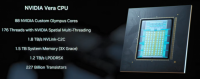ファン(詳細は明かさなかった)によれば、Arm設計をベースとするVera CPUは、置き換えるGrace CPUチップの2倍の性能を発揮する。88個のカスタムOlympusコアを搭載し、エヌビディアの「空間マルチスレッディング」によりコアあたり176スレッドを提供する。1.8TB/秒のNVLink C2C接続、1.5TBのオンチップメモリ(Graceの3倍)、1.2TB/秒のLPDDR5Xメモリ帯域幅を備える。