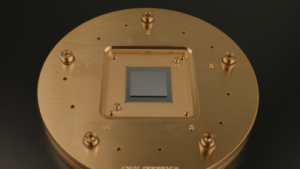 カリフォルニア州パサデナにあるAWS Center for Quantum Computingで開発・製造された超伝導量子ビット量子チップ。クレジット:AWS |
